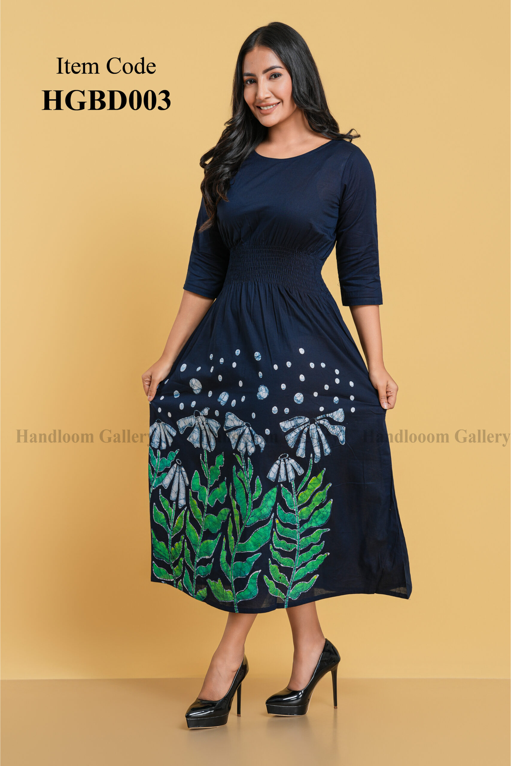 Each piece is carefully handcrafted, ensuring unique batik designs and superior quality. Easy to maintain and gentle on the skin, this dress is a must-have for those who appreciate handloom fashion, sustainable clothing, and natural fabrics.